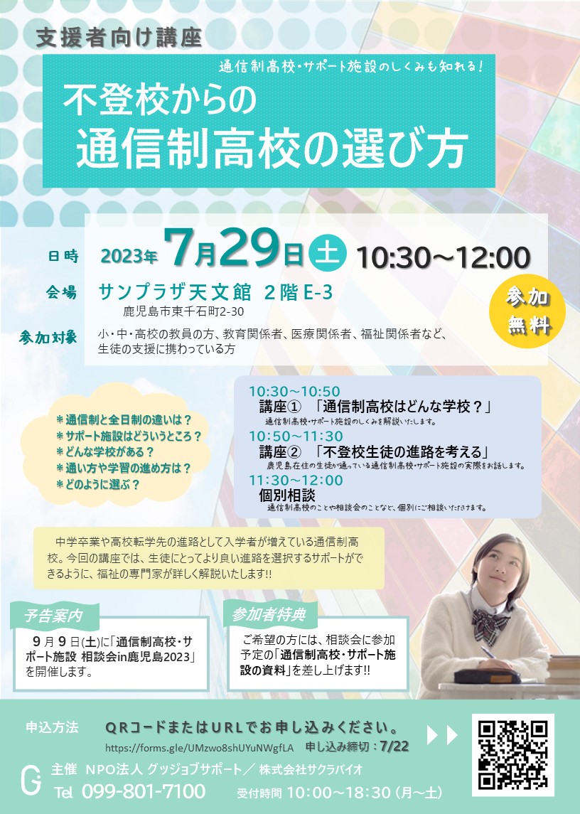 【終了】支援者向け講座「不登校からの通信...